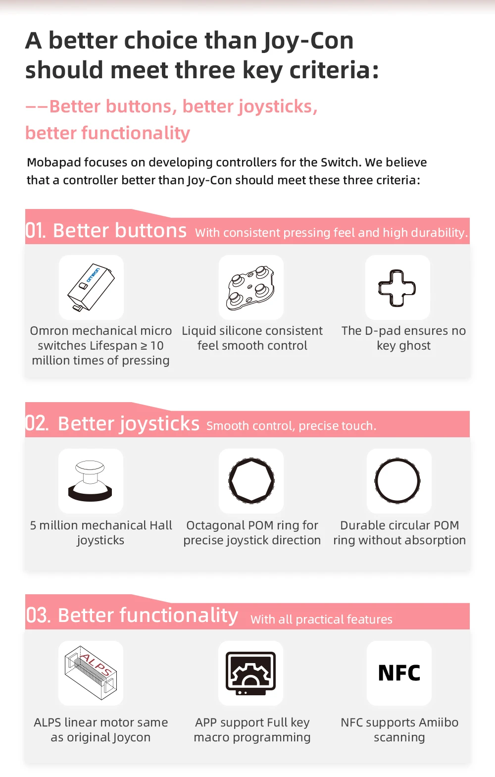 Mobapad m6s joycon para nintendo switch controlador pro joystick ajustável controlador de efeito hall vibração hd/giroscópio de 6 eixos joypad