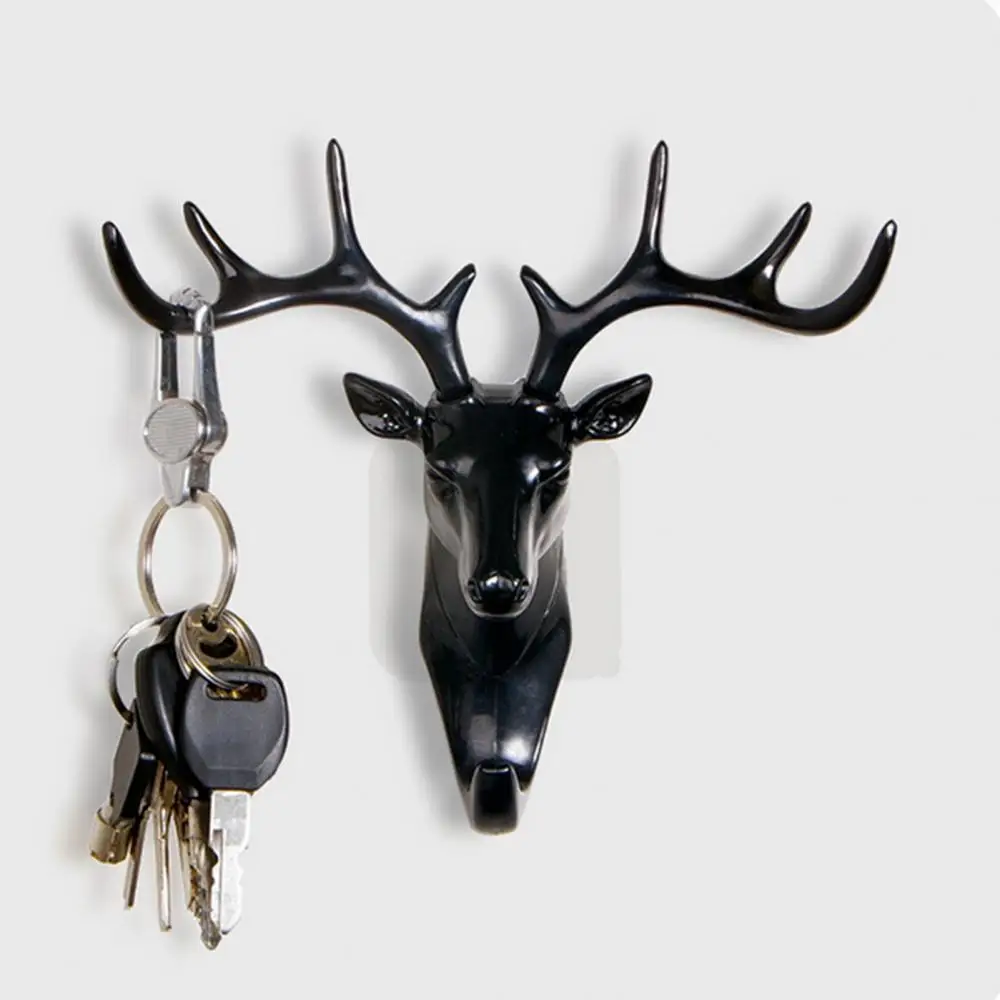 Gancho de chifre cabeça de veado porta-chaves cabide sala de estar ornamento decorativo de parede