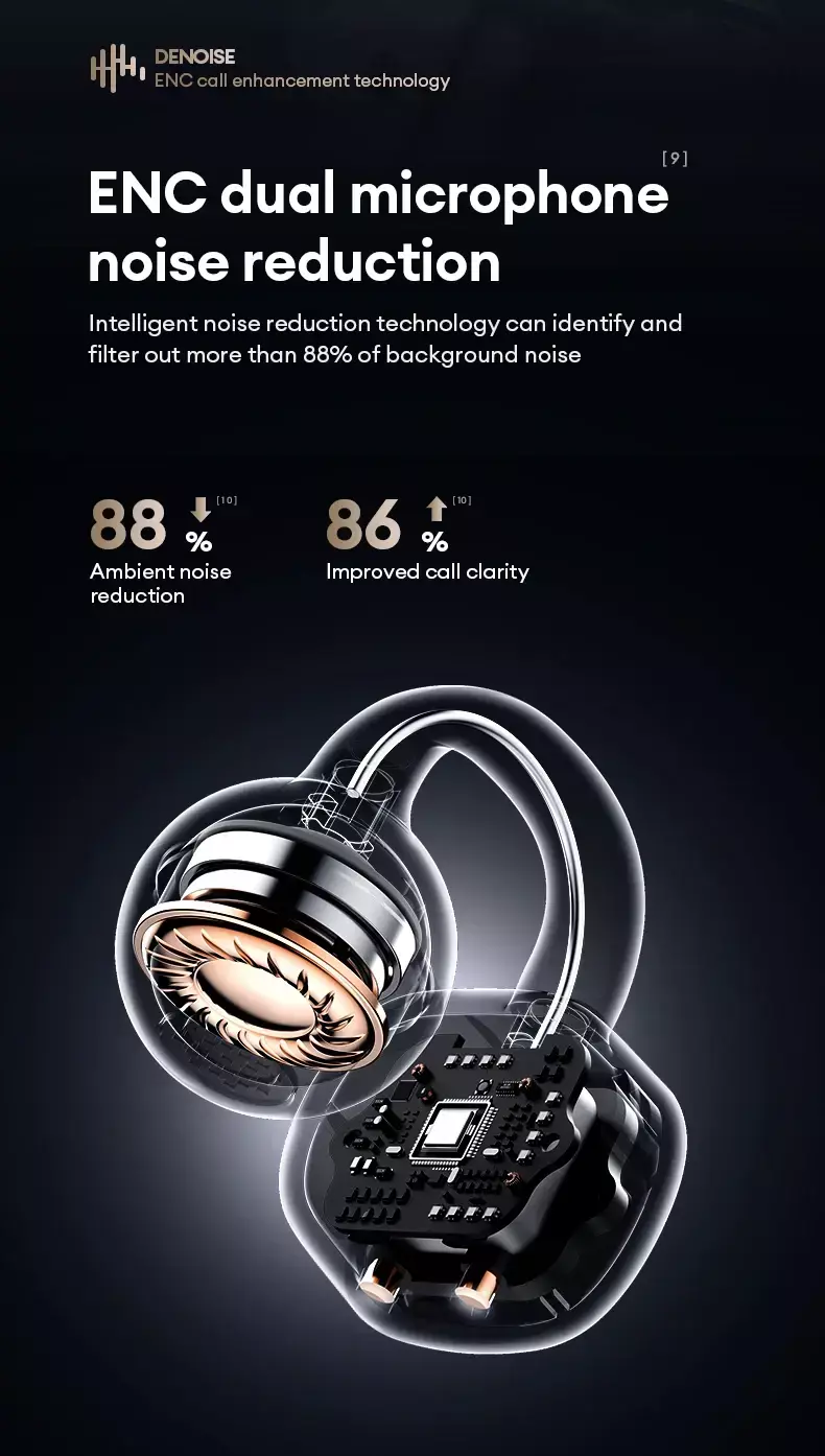 3.[Redução de ruído de microfone duplo ENC inteligente / 88% de filtragem de ruído]: