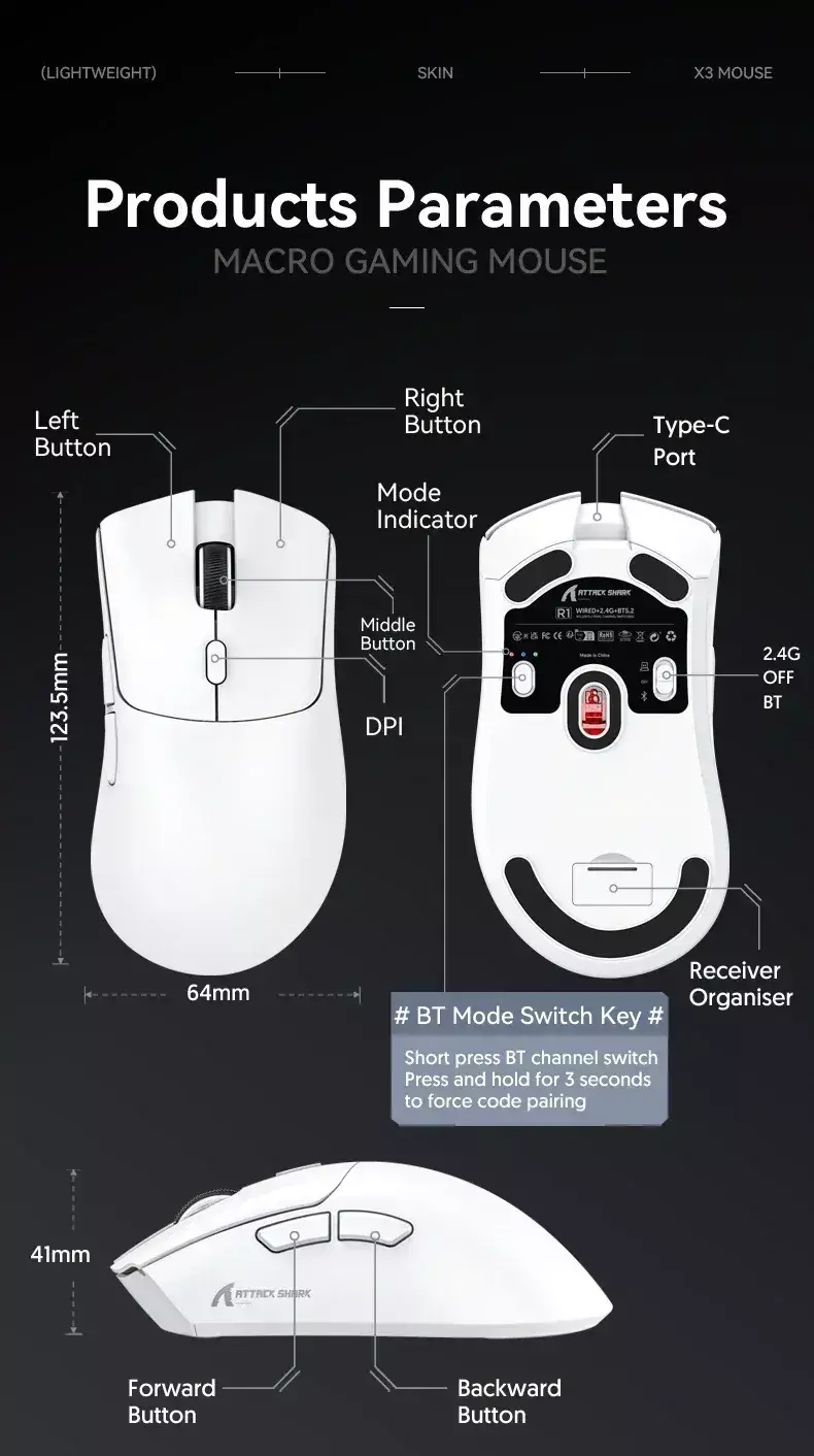 3.Método de conexão do produto: USB, 2.4G.Bluetooth