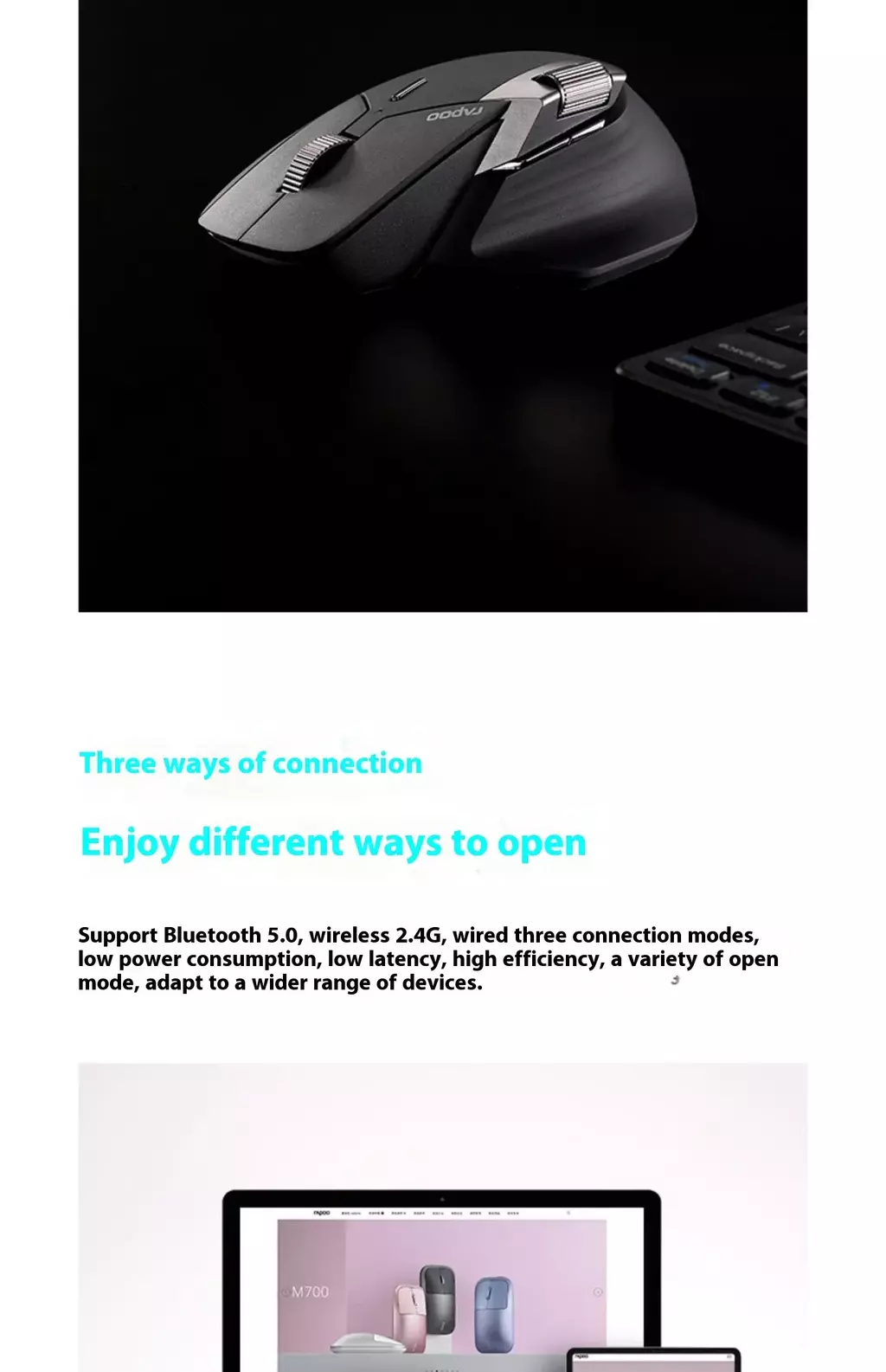 Início>Informatica>Mouse>Novo rapoo mt760 mouse bluetooth sem fio tri modo ergonomia mouse gamer acessório para computador portátil jogos escritório para presente