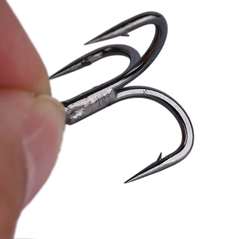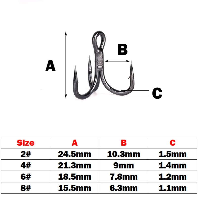 Descrição:OUTKIT 10pcs 6x forte super afiado redondo triplo gancho antiferrugem aço de alto carbono 2 4 6 8# Equipamento de pesca com anzóis agudos do mar