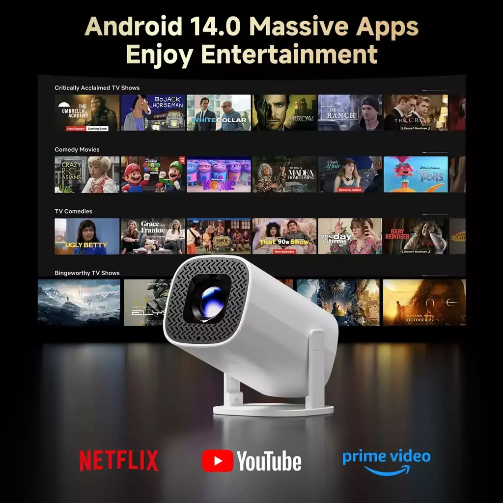 HONGTOP P30 PRO Mini Projetor Inteligente Android 14 WiFi6 BT 5.0 Suporte 4K 1280*720P Projetor Portátil Ao Ar Livre de Cinema em Casa Inteligente