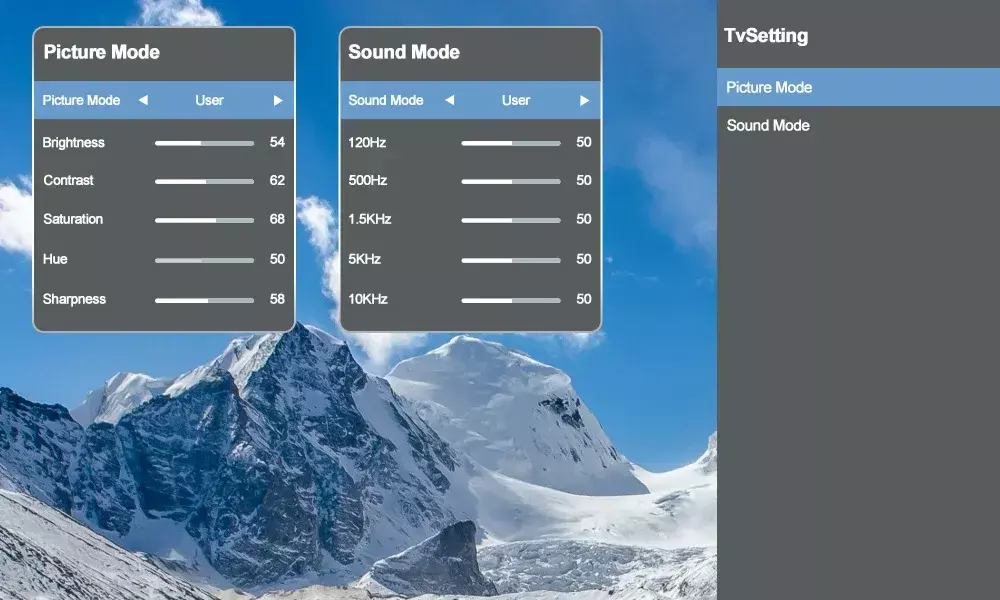 Através do modo de imagem de seleção de sinal USB e HD "Usuário" pode ajustar brilho/contraste/saturação