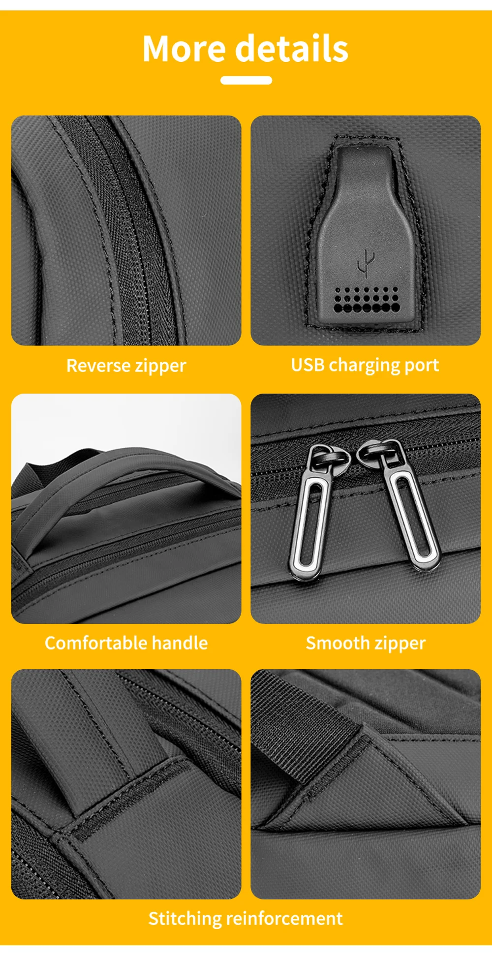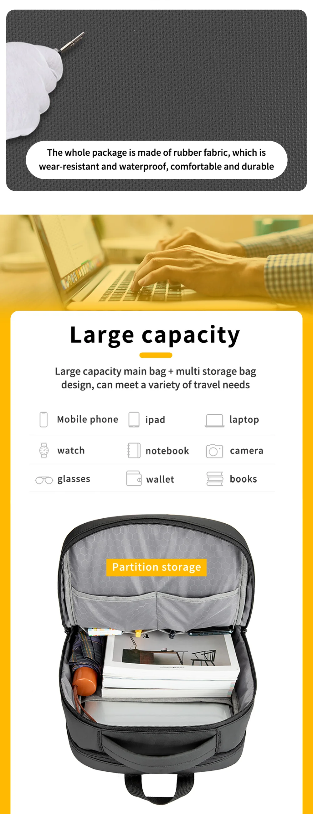 • Grande capacidade:Com uma capacidade de 20-35 litros, esta mochila pode conter todos os seus itens essenciais para uma longa viagem ou reunião de negócios.