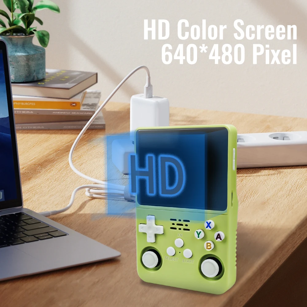 Com mais de 15.000 jogos clássicos, tela IPS de 3,5 polegadas.Chip RK3326 de 1,5 GHz, sistema Aroks, latência zero, sem fantasmas. O console de jogos portátil suporta OTG 2 Player, reviva jogos clássicos de infância com amigos e familiares!