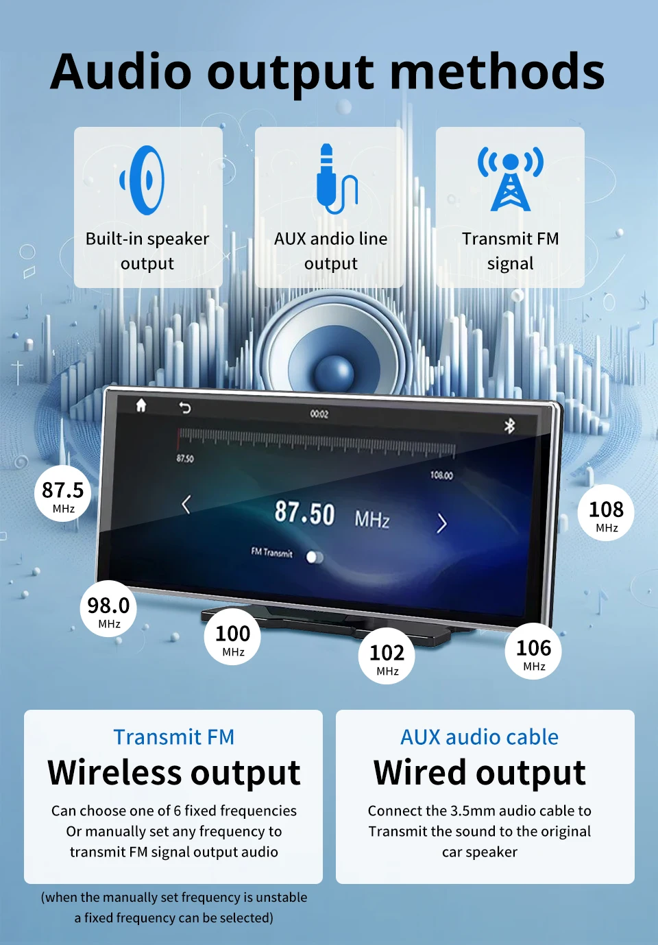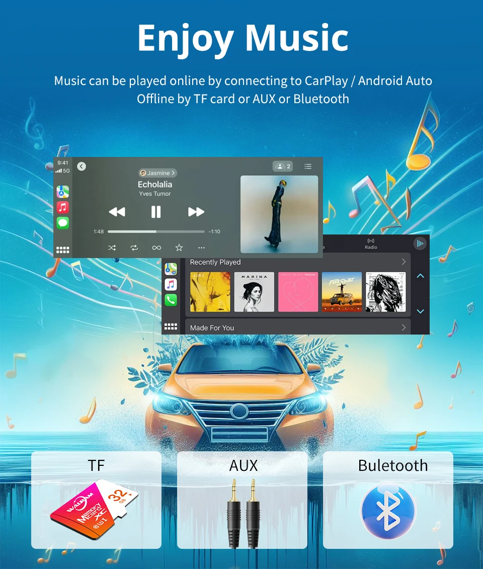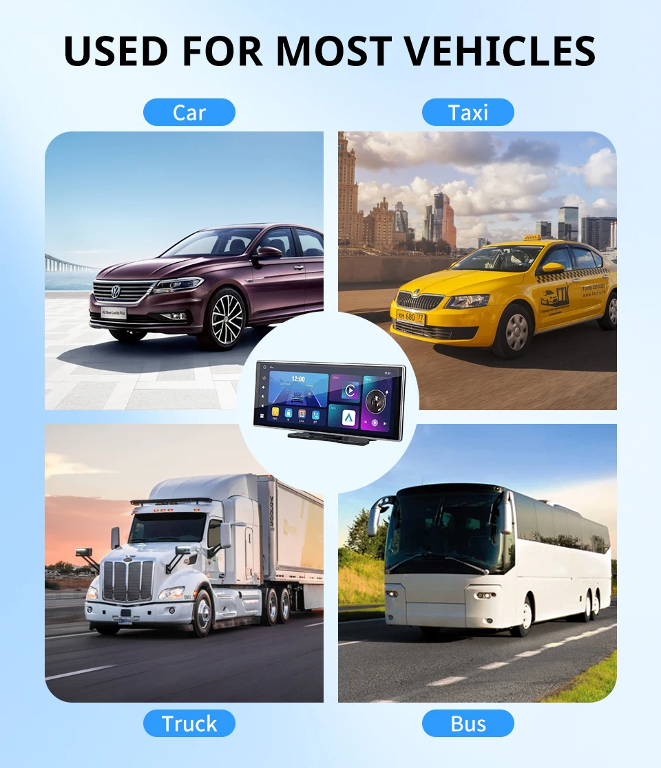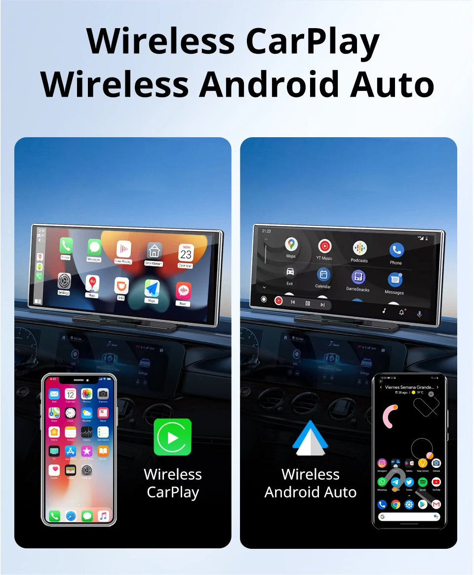 1.Suporta Carplay sem fio e Android Auto: Com Carplay sem fio e Android Auto, você pode conectar facilmente seu telefone ao sistema de áudio do carro e desfrutar de integração perfeita.