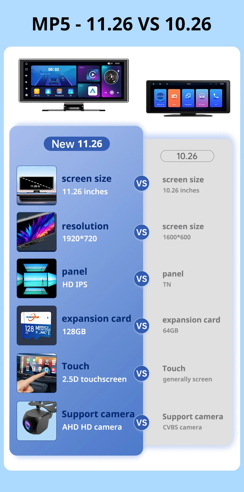 2.Suporte para tela de alta qualidade de 11,26 polegadas: A tela de alta qualidade de 11,26 polegadas fornece efeitos visuais claros e detalhados, permitindo ajustar facilmente o tom por meio de música e vídeo.