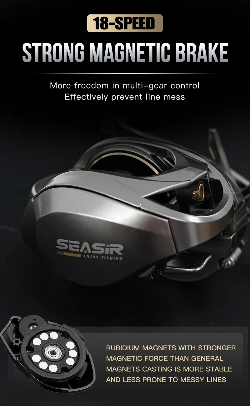 Seasir Megacuda Baitcasting Reel Arrastar 15KG Carretel Profundo 9 + 1BB 6.5:1 Alumínio Quadro Carbono Lado Jigging Metal Reel Seawater