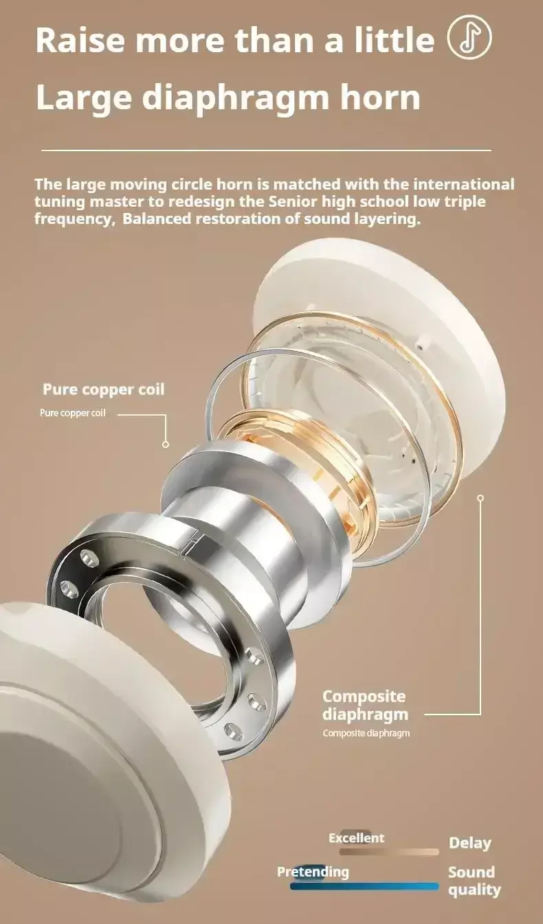 A unidade dinâmica de 3,40 MM, com seu desempenho poderoso, restaura detalhes de áudio delicados, com graves ricos e agudos nítidos, proporcionando uma experiência musical ao vivo.