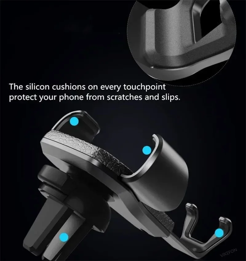 • Montagem em clipe de ventilação de ar:O design do suporte do clipe de ventilação permite fácil instalação e remoção do suporte do telefone, sem deixar resíduos.