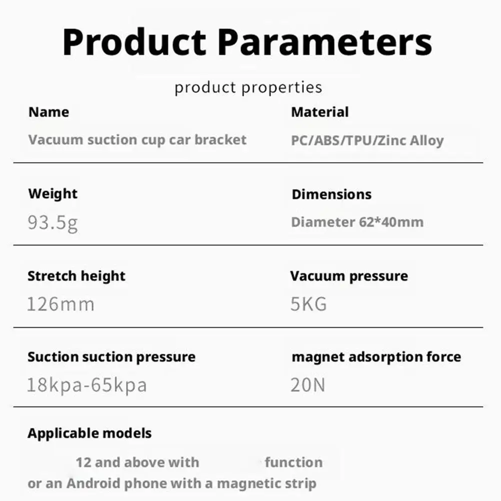 Sucção a vácuo: A ventosa inferior pode aderir firmemente ao para-brisa ou outras superfícies lisas do carro através do princípio da sucção a vácuo, garantindo que ele não caia durante a condução.