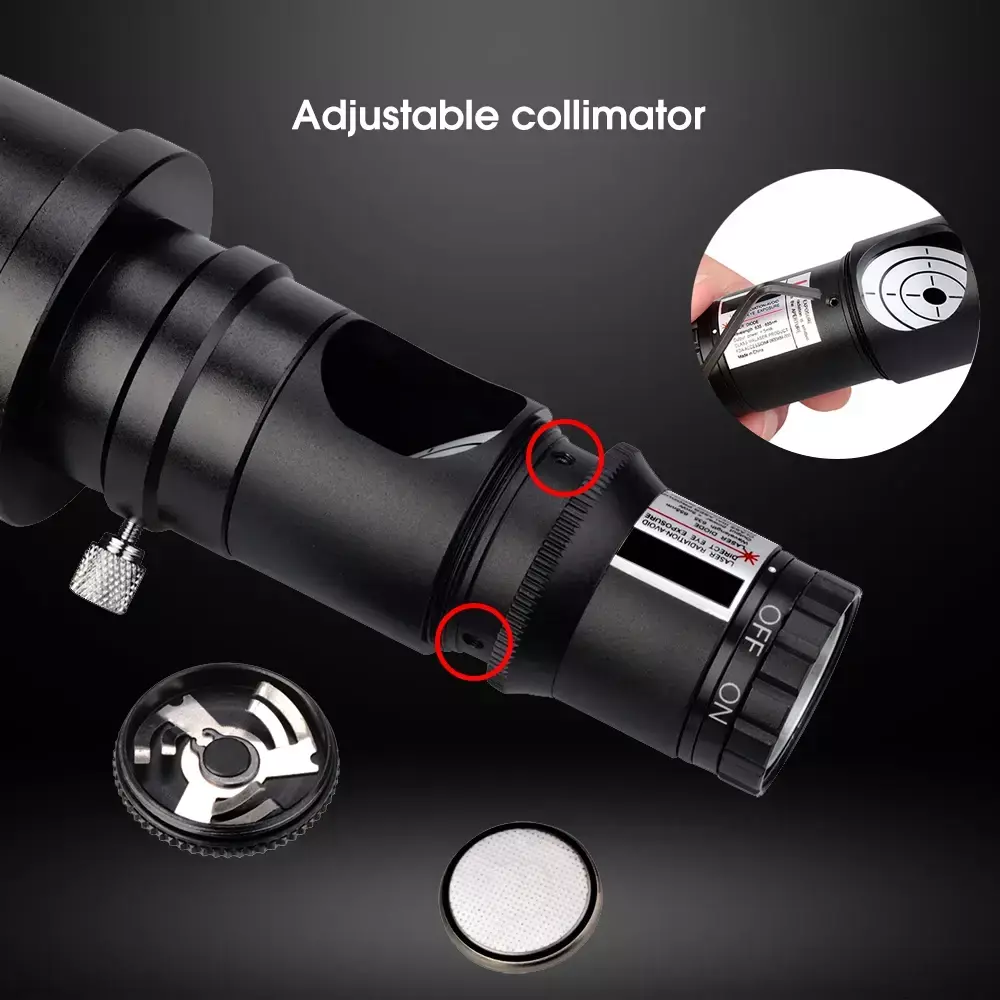 Há 3 parafusos selados de colimação no corpo; se você encontrá-lo perder colimação, você pode usar a chave sextavada presentational para calibrar o problema coaxial você mesmo (o furo da calibração para a maioria de produtos no mercado foi obstruído, o usuário não tem nenhuma maneira de ajustar)