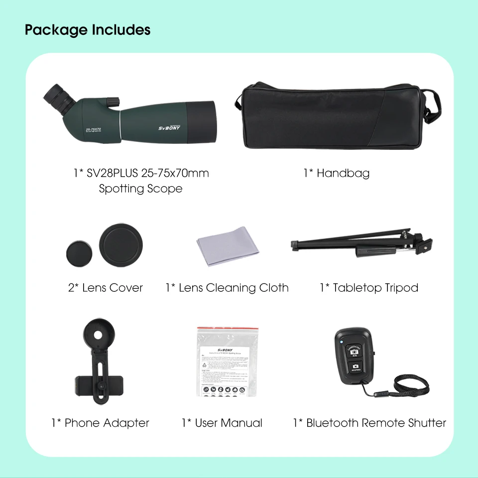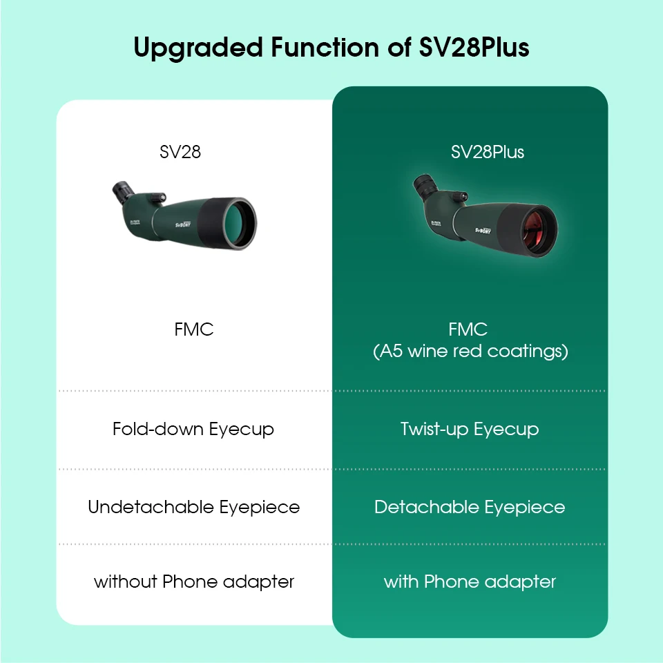 SV28PLUS Escopo de observação de pássaros com adaptador de telefone móvel BAK4 FMC para vida selvagem e tiro com arco