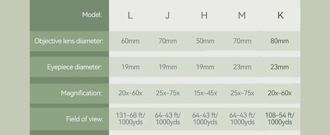 Diâmetro da lente objetiva: 50/60/70mm