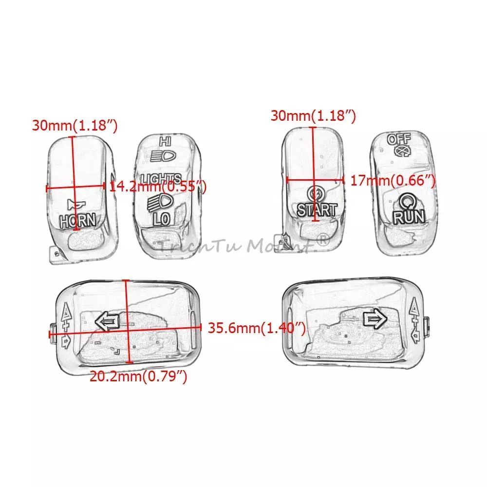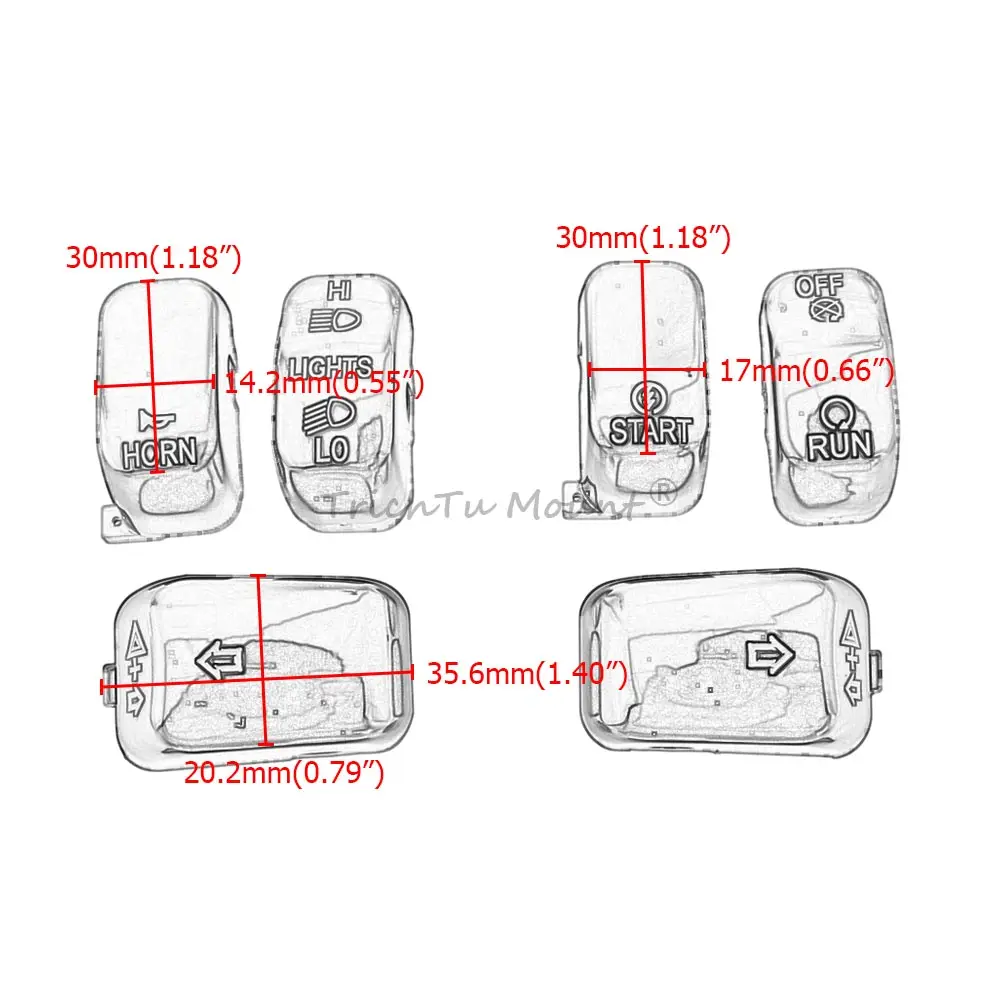 O kit contém um conjunto completo de tampas de interruptores cromadas/pretas para os interruptores do guiador esquerdo e direito