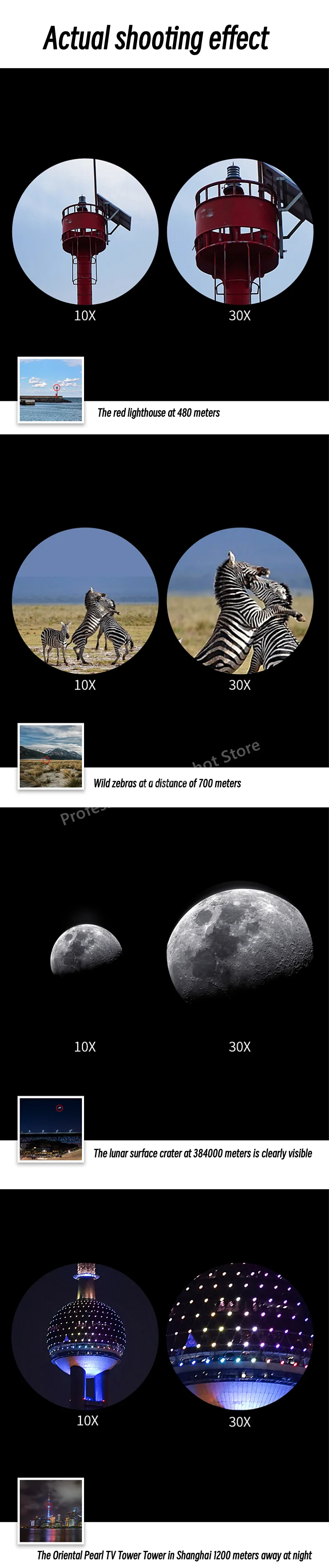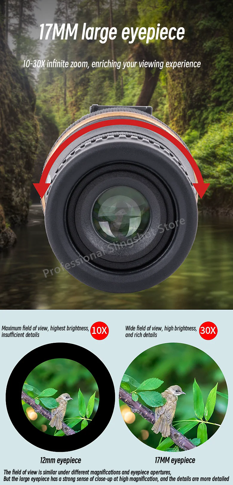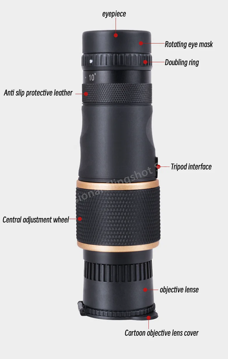 Telescópio monocular ajustável de alta definição com zoom contínuo de metal 10-30X45 para caça e turismo ao ar livre