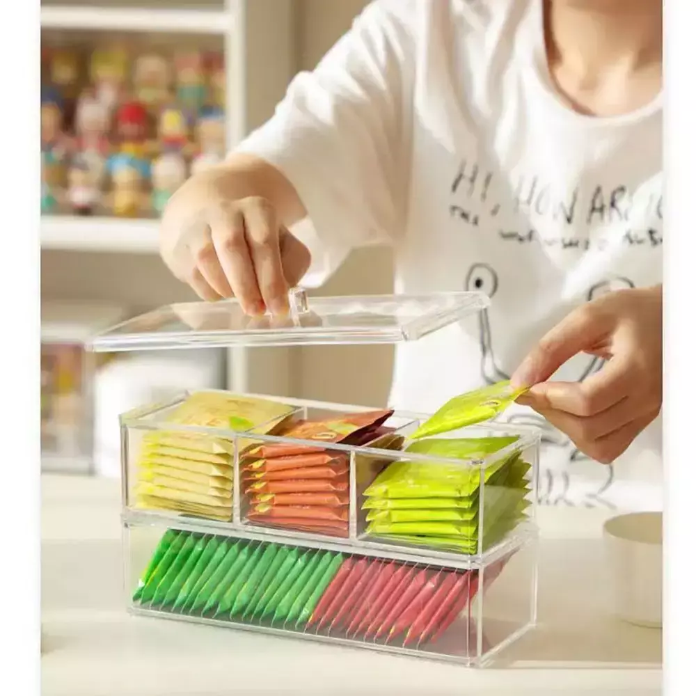 5. Office and Home use: Whether you want to organize your tea bags in the office or create a neat tea station at home, this storage box is a practical and stylish solution. Its sleek design and transparent exterior blend seamlessly with any decor.