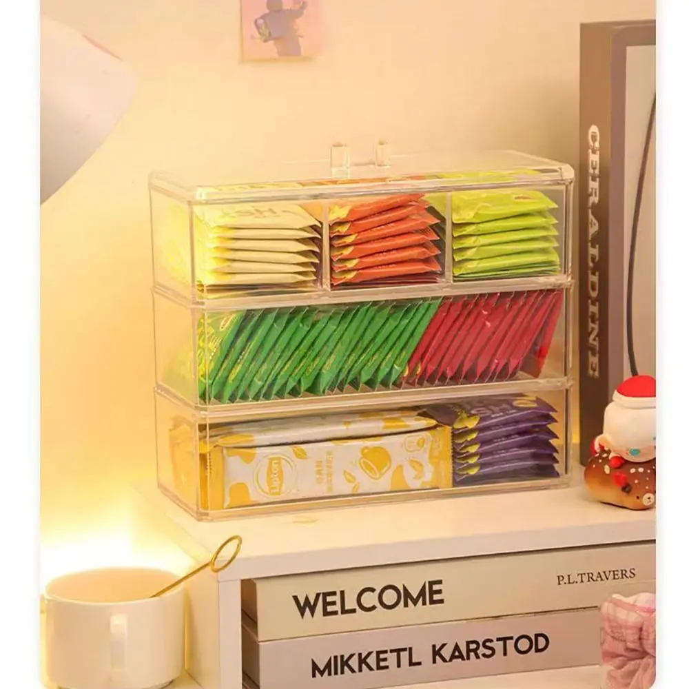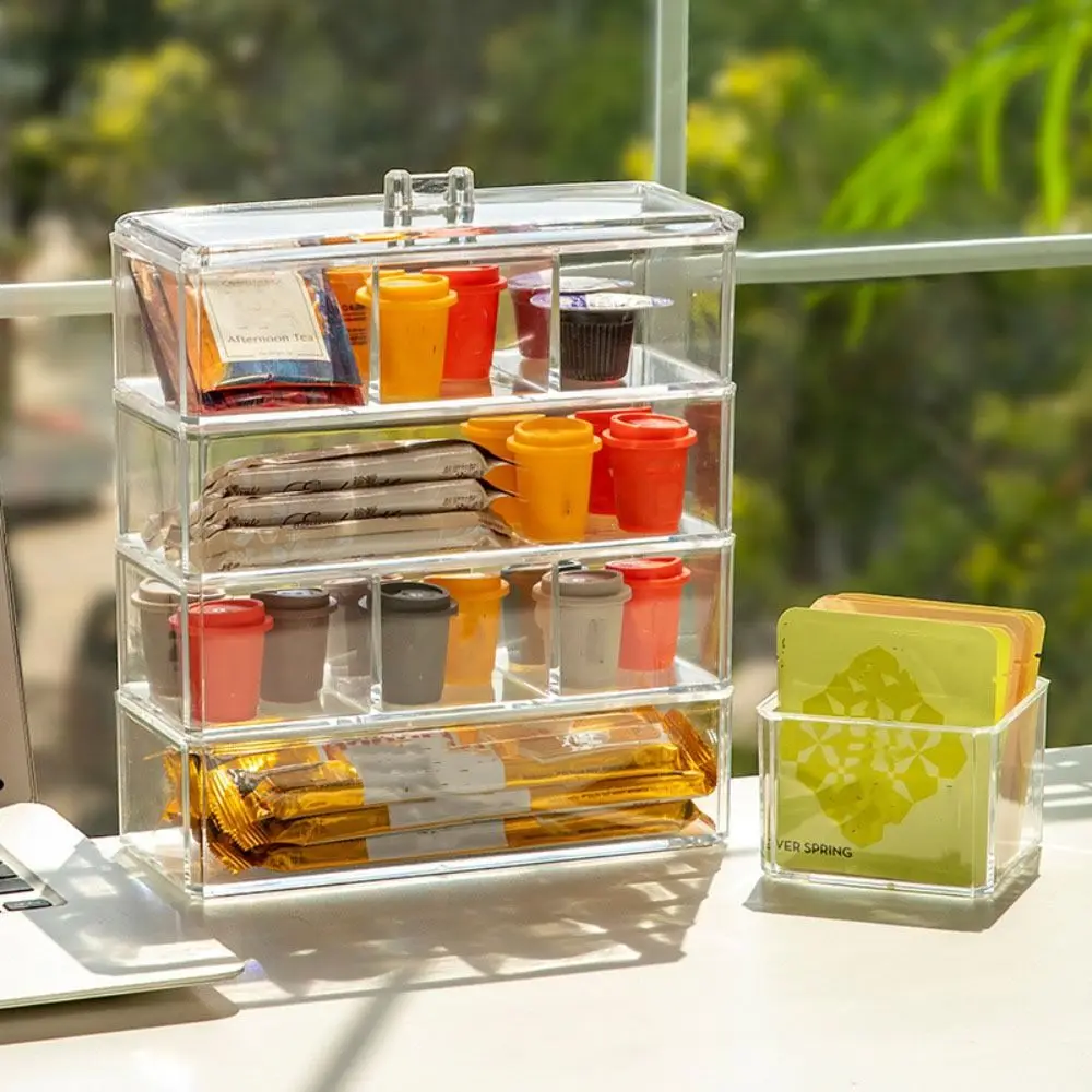 Nome: saco de chá acrílico caixa de armazenamento café leite chá classificação rack de armazenamento transparente escritório desktop sala de chá