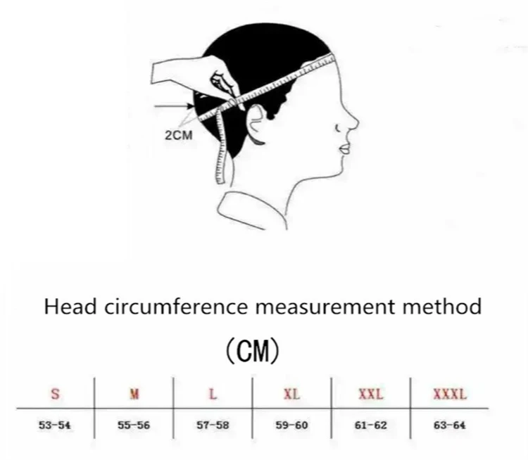 Tamanho da cabeça: M:55-56CM L:57-58CM XL:59-60CM XXL:61-62CM