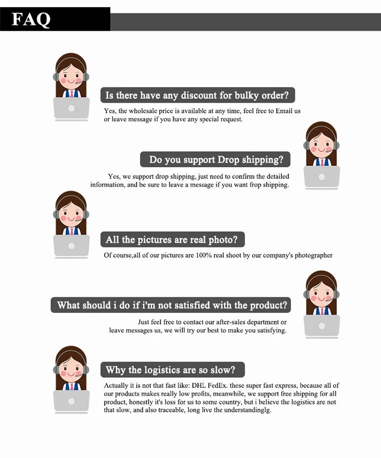 1.Devido aos diferentes monitores e efeitos de luz, a cor real do item pode ser ligeiramente diferente da cor mostrada nas fotos.Obrigado!