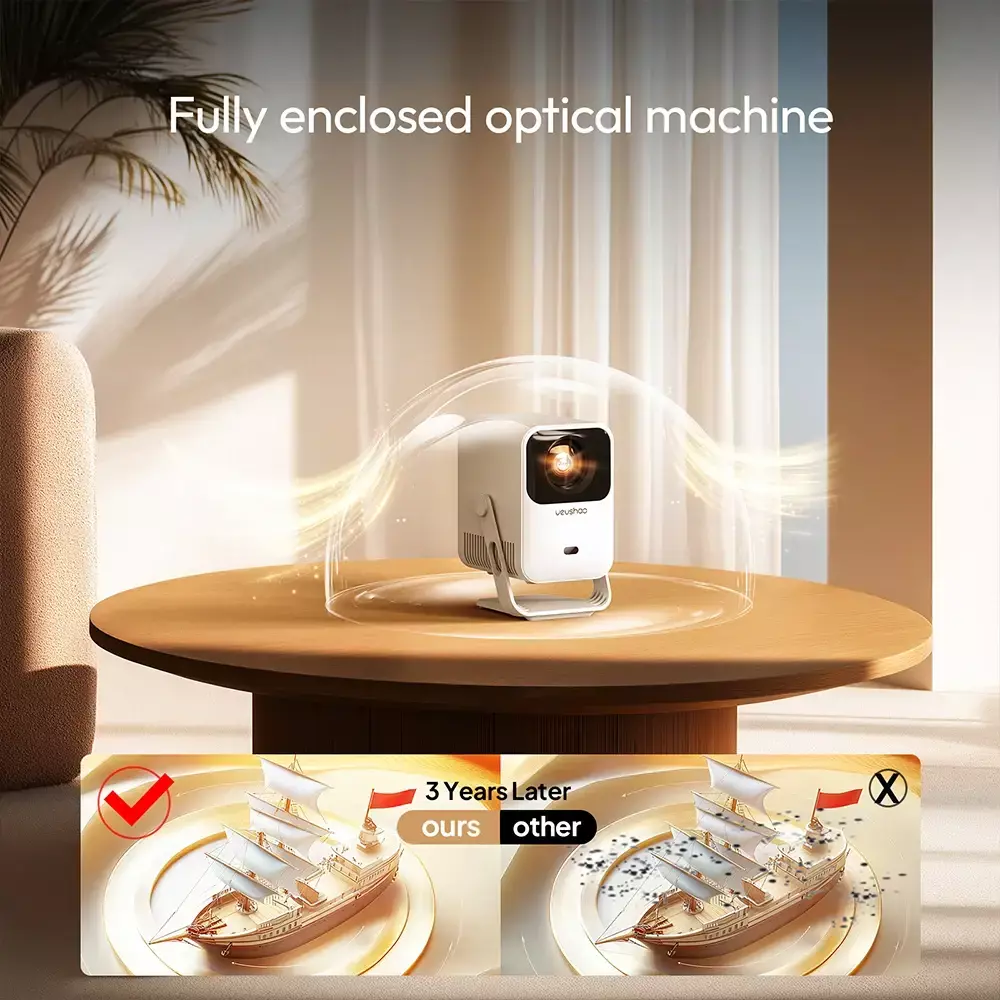 A máquina óptica fechada através da estrutura totalmente selada isola completamente a poeira externa, para evitar o projetor tradicional devido à poeira causada pela degradação do brilho, desvio de cor e outros problemas, especialmente adequada para uso a longo prazo em ambientes empoeirados, reduzindo significativamente a frequência de manutenção.