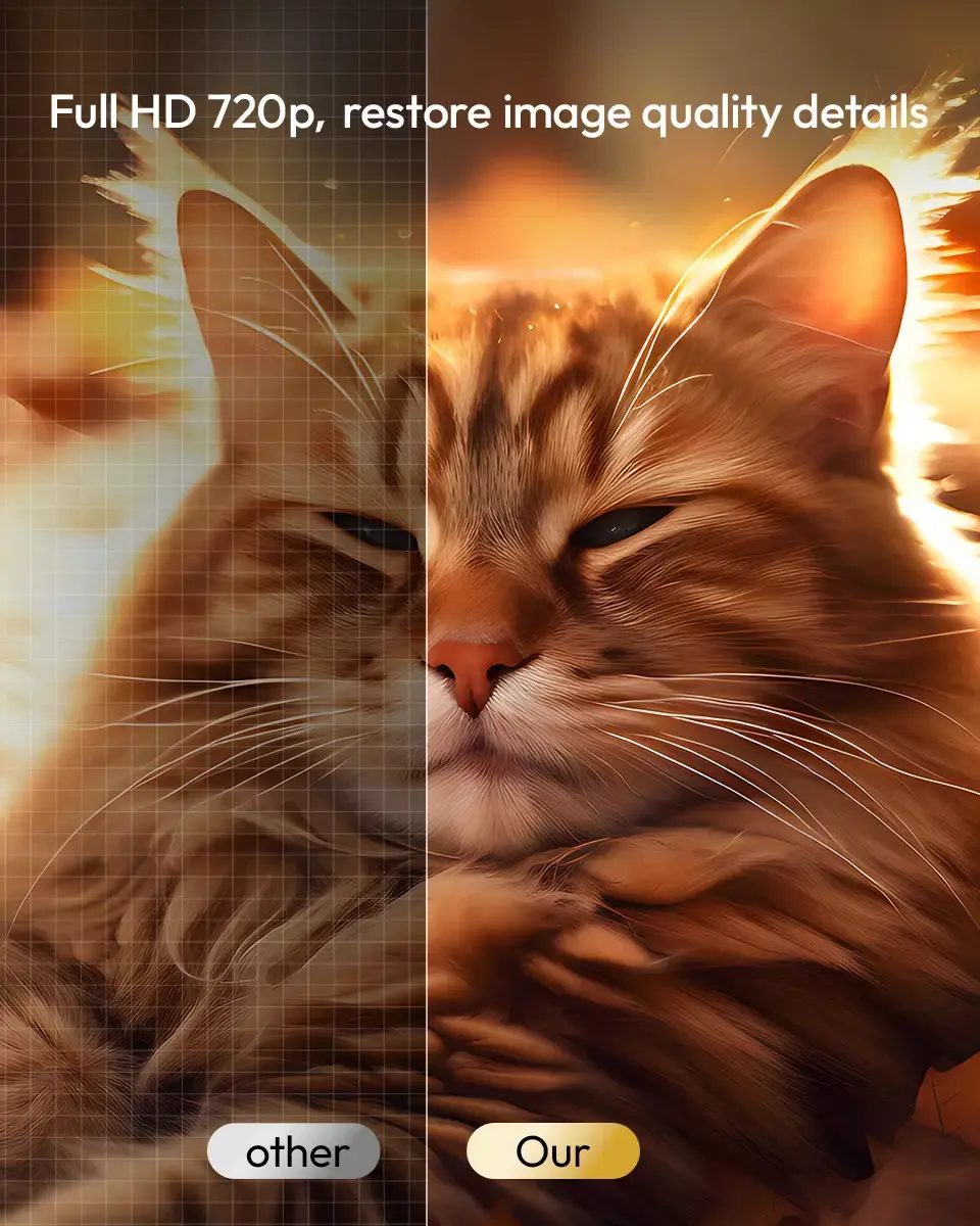 A resolução nativa 720P proporciona uma experiência de visualização nítida, permitindo home theater no quarto cores completas e contraste moderado para a melhor experiência.