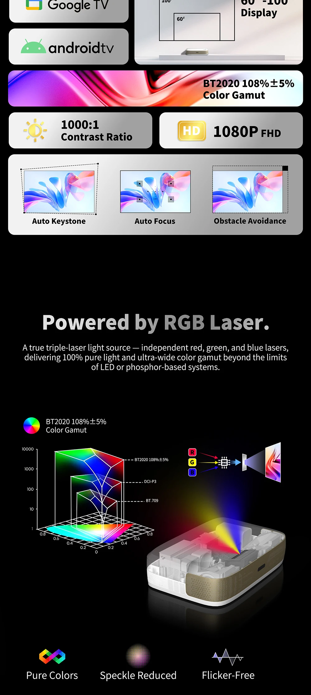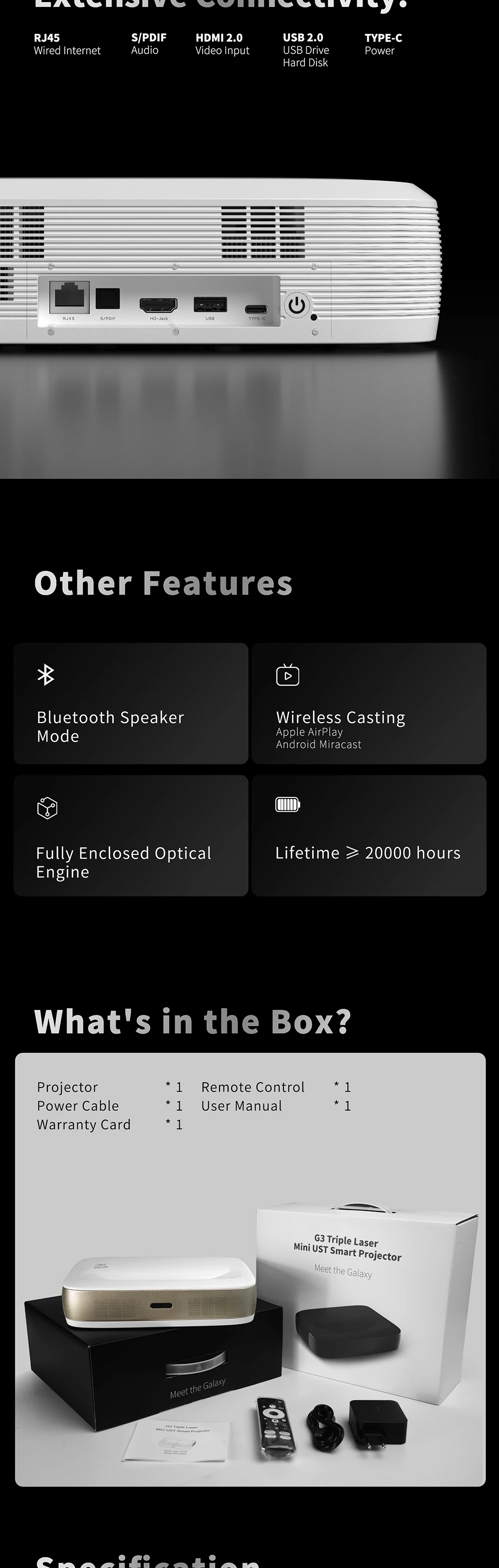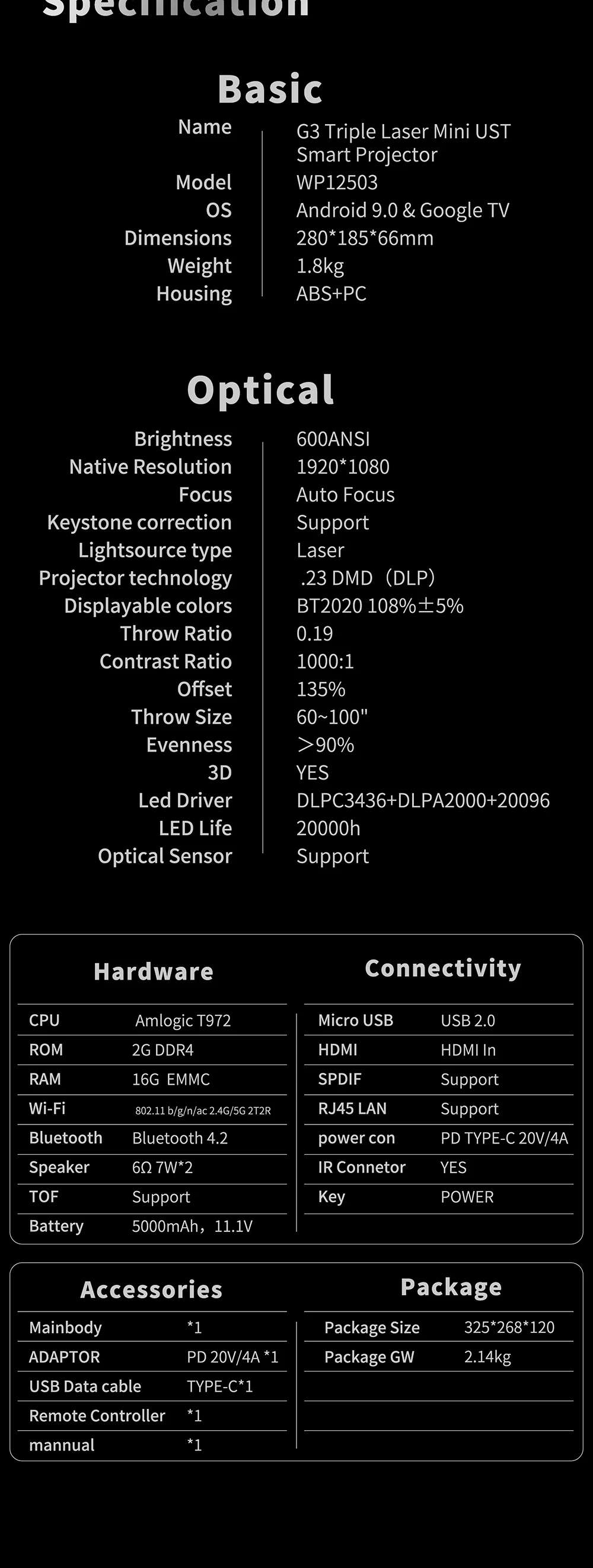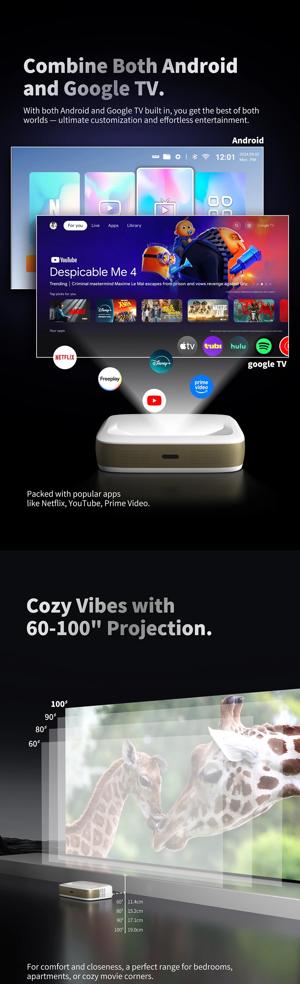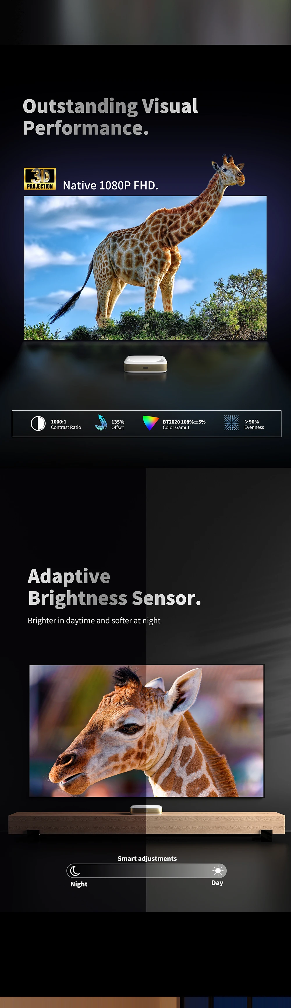 Experimente uma clareza incomparável com o projetor Wupro G3 4K, oferecendo uma resolução nativa de 1920P para imagens vívidas e realistas.