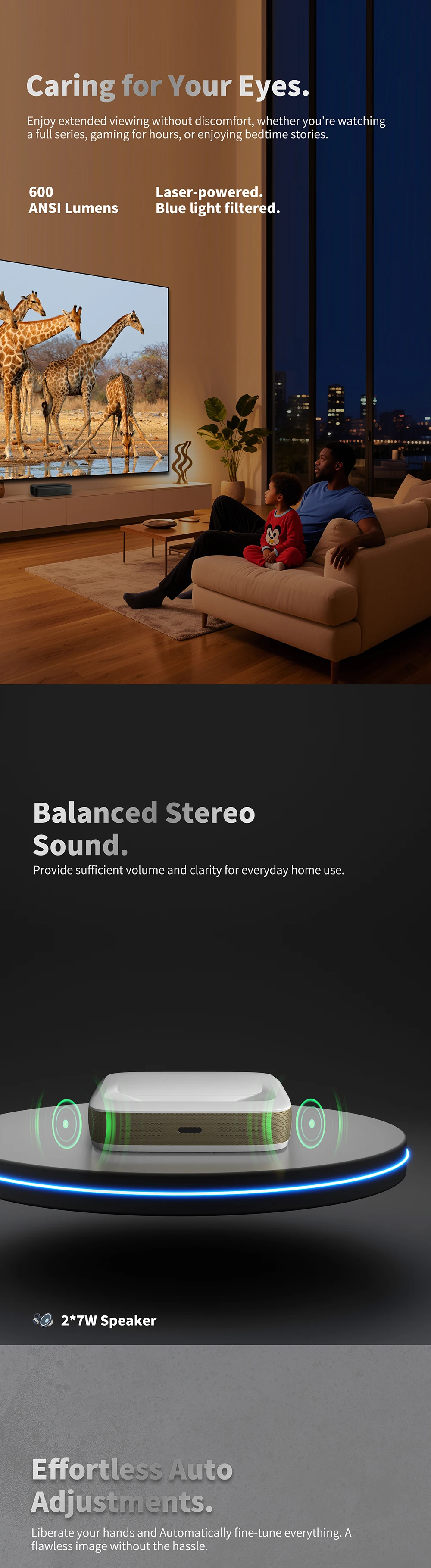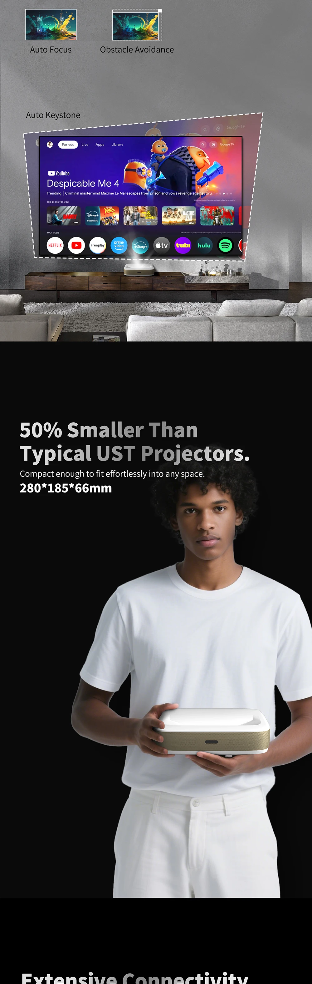 Nunca mais se preocupe com projeções desalinhadas com o recurso de correção trapezoidal automática, garantindo que suas imagens estejam sempre perfeitamente emolduradas.
